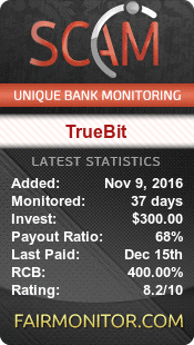 TrueBit это торговая фирма hft, ориентирована исключительно на bitcoin торгами на нескольких крупнейших в USD - BTC биржи в мире. Когда вы доверяете TrueBit с ваших инвестиций, мы считаем сделать все возможное, чтобы вознаградить доверие. Чем дольше ваши инвестиции остается в TrueBit, тем выше ваш интерес поднимается скорость!