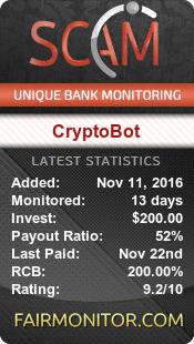 CRYPTOBOT INNOVATIVE TRADING LTD предлагает инвестирование в торги криптовалютами на основных криптовалютных биржах мира с использованием бота, который работает на основе онлайн мессенджера Telegram.