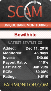 Bewithtbtc является самым быстрорастущим онлайн-инвестиционной площадки в мире. С командой, состоящей из профессиональных маркетологов, ориентированных на торговлю криптовалютой, было привлечено около 350 000 долларов чистой прибыли от инвестиций. Мы предоставляем наши услуги только для частных клиентов, но сейчас, мы идем в ногу с онлайн-платформу обслуживания полезной для всех, кто хочет сделать некоторые дополнительные наличные деньги. Стоимость криптовалют растет с каждым днем, так что теперь это лучшее время, чтобы начать инвестировать с нами.