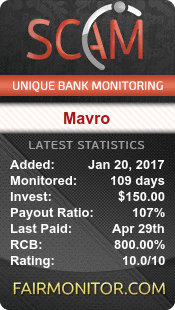 Каждое внесение средств участником сервиса оформляется в виде отдельного вклада в его личном кабинете. Вклад можно сделать в любой из доступных к вводу ЭПС (электронных платежных систем). Доход по вкладам в Mavro плавающий. Прибыль может достигать более 5% в сутки. В день внесения вклада прибыль не начисляется и не выплачивается. Вклад начинает работать с 00.00 МCK суток следующих за сутками внесения вклада.