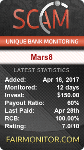 Высокодоходный инвестиционный HYIP-проект MARS8. 6% в день, срок депозита - 25 дней, 180% в месяц. Безубыток за 16 дней. Рефбонус-15%. Автоматический рефбек.