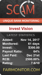 Invest Vision ведёт свою работу по принципу доверительного управления, любой желающий может передать свои средства и принять участие в инвестиционной деятельности компании. Доходность по депозитам может составлять до 3.5% ежедневно в зависимости от вклада.