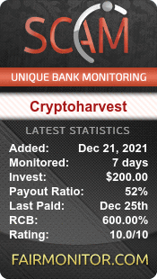 Cryptoharvest - это проект стейкинга Binance Smart Chain. Он стартовал 17 декабря этого года, а именно 3 дня назад. Он обеспечивает среднесрочный план депозита, и вы можете зарабатывать 13% в день в течение 15 дней, включая основную сумму. Все запросы на вывод средств обрабатываются мгновенно .